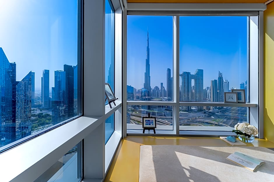 Our Deluxe Burj Khalifa View Rooms offer stylish comfort with iconic landmark views. A calming space filled with shades of soft gray, white and lilac with subtle gold accents, these rooms are the perfect introduction to the wonderful city of Dubai. The room features a view of the Arabian Gulf, 1 bed and a spacious marble-clad bathroom with a walk-in rainfall shower and separate deep-soaking bathtub.